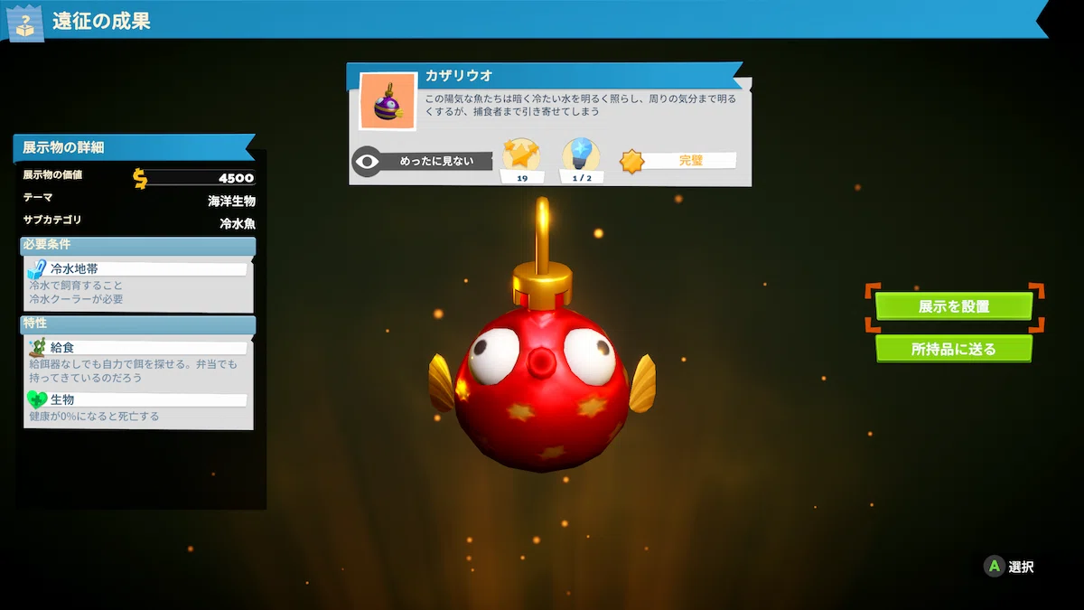 きらめきの裂け目:冷水魚の展示物を展示でロック解除