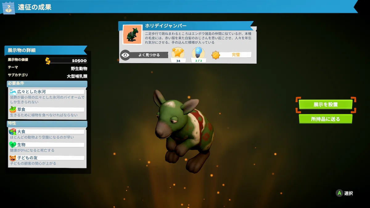 最高レベルの野生動物…同時開催の「ズージアム」DLCにて。スパ施設で動物をケアできるようになっていれば生物多様性レベルを上げやすい=時間をかけずに入手できるだろう。未着手だと結構時間かかるはず